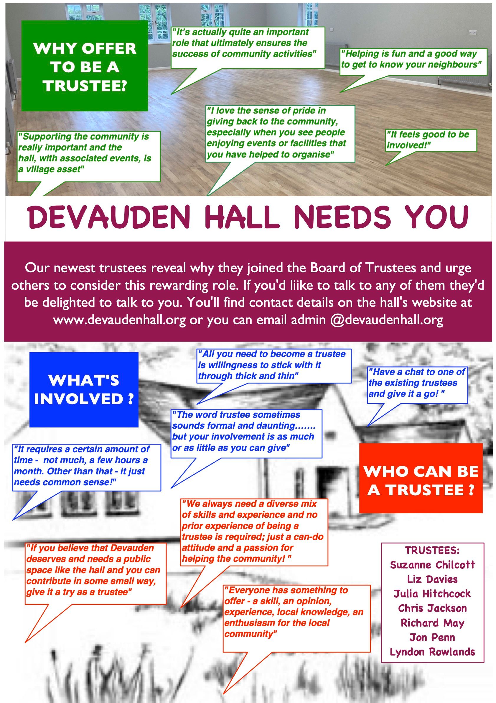 Trustees are also resoundingly positive about their experience in post and we asked our own trustees why they offered to join the committee. The poster alongside shows their quotes. To download the poster for a closer read, just click on it.